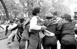 Maestros rompen el bloqueo del grupo policiaco femenil en