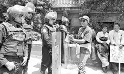 Maestros en planton sobre Reforma y frente a la Bolsa de Valores.