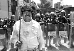 Maestro frente a Gobernación. Foto: Raúl Ortega