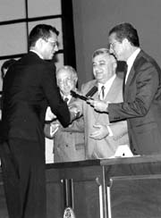 El presidente Ernesto Zedillo entrega el reconocimiento a Salvador