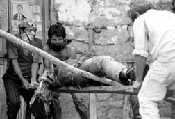 Levantamiento de una de las víctimas asesinadas en la