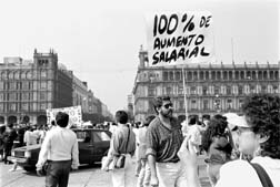 en el Zócalo para exigir ciento por ciento de aumento.