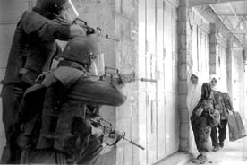 intentan salir de la línea de fuego. Al menos 38 árabes fueron