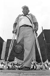 Manifestante durante la protesta del MUNJP frente a la Cámara