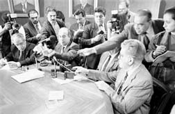 Rodríguez Alcaine en la central cetemista Ť Foto: Ernesto Ramírez