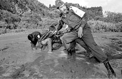 Militares rescatan a un niño del lodo provocado por las