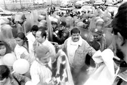 Un grupo de colonos evadió a granderos y logró llegar hasta la puerta