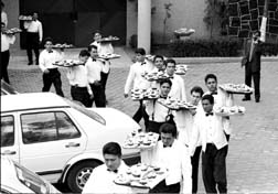 Comida para los asistentes a un matrimonio colectivo celebrado en