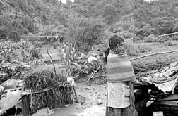Una mujer que vive en la barranca de Huiloac observa los destrozos