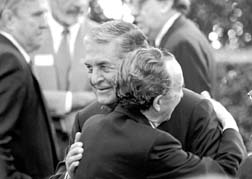 Antonio Ortiz Mena abraza a Gilberto Borja