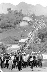 La marcha inició entre la carretera que comunica Oventic con la cabecera municipal. Durante una hora, la columna de 2 mil hombres y mujeres zapatistas recorrió las principales calles del poblado y pasó frente al improvisado ayuntamiento priísta.