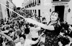 Y como si no hubieran marchado durante cuatro horas, los manifestantes festejaban cuanto llamado a luchar les hacían los dirigentes, los candidatos. ``Hasta parece que están en carnaval'', decía un efusivo sansorista, mientras a su lado, en el camión que sirvió de templete, dos dirigentes perredistas participaban también pero con rostros adustos, serios, distantes.