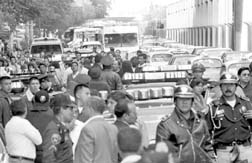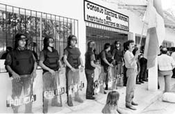 Policías antimotines vigilan la