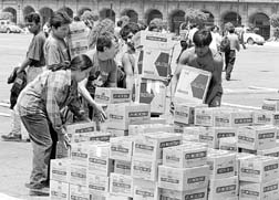 Entrega de víveres en el Zócalo, durante la campaña Para