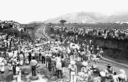 Previo a la reunión los huicholes realizaron, por primera vez en la región, una marcha por la comunidad de San Sebastián Teponahuaxtlán para mostrar a los pequeños propietarios su determinación de defender las parcelas cercadas y a las cuales extensos alambres de púas les impiden el acceso. Un incidente marcó esta acción. Detuvieron por algunas horas al trabajador Rogelio Abrego Trejo, quien dijo lo había contratado desde hace doce años un posesionario del que aseguró ignorar su nombre. ``Yo gano sólo 22 pesos por día, tengo doce hijos y no sé de ningún problema de tierras'', aclaró.