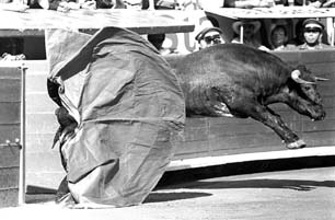 Temerario lance del novillero debutante José Rubén Arroyo, quien