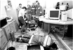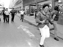 Durante la riña de vendedores ambulantes.