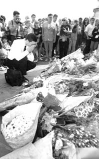 Decenas de ramos de flores fueron colocadas en la