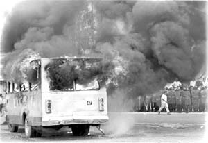 cuatro unidades incendiadas; el ayuntamiento acusó a conductores