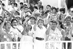Más de 500 policías antimotines resguardaron la seguridad del mandatario y acompañantes, pero no pudieron impedir que los perredistas insultaran a Azar García.