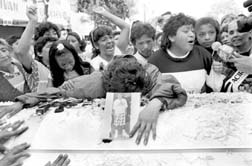 Vecinos de la colonia Buenos Aires, momentos antes del sepelio