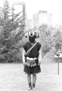 Militante zapatista durante la ceremonia en Cuicuilco Ť Foto: