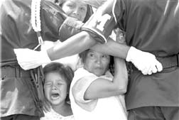 la derecha, asistentes al desfile en el Zócalo de la ciudad de
