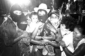 Delegados zapatistas y sus familiares, la madrugada del sábado. El