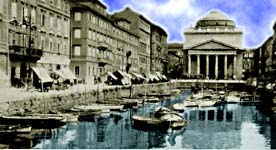 La tarea regeneradora, en lo que concierne a locales, es a menudo desarrollada por las Aseguradoras Generales, las cuales vuelven a dar a palacios y cafés triestinos la belleza ordenada y misteriosa de la florida ciudad burguesa de un tiempo. El retrato del escritor que pasa en el San Marco buena parte de su vida, recibiendo incluso el correo y a visitantes que le preguntan por algo de la floreciente y perdida ciudad de antaño, que él, por lo demás, sólo conoce de oídas por chismes y nostalgias ajenas -ese retrato, pintado por Valerio Cagia, se encuentra colgado en la pared de la izquierda para quien entra, de frente a la gaveta de vidrio con los letreros dedicados de los frecuentadores ilustres-, podría ser sustituido, con buenas razones, por el viejo retrato dieciochesco de Masino Levi, funcionario de aseguradoras, que se halla en el foyer del Politeama Rossetti, adyacente al Jardín Público: de chaleco, con un papel en una mano y la pluma de oca en la otra, y una discreta y elusiva sonrisa hebraica sobre los labios. Un Mefistófeles asegurador de la vida, y garante, con un tanto de póliza, de una sanguínea edad adulta, por la que vale la pena firmar y cederle el alma.