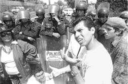 Manifestantes de la Unión Campesina Democrática afuera de la Asamblea