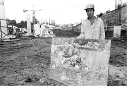 Un trabajador muestra una aerofoto de la zona de Cuicuilco.