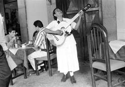 Cantante en los restaurantes de los portales de la capital de