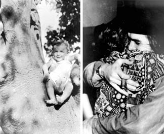 Un niño como cualquiera, sobre el tronco de un árbol en la localidad argentina de Morón. 1929. A la drecha, el Che abraza a su madre, Celia de la Serna, después de seis años sin verla, cuando ésta llega a La Habana el 9 de enero de 1959