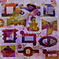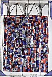 Otras veces, en cambio, como en el primer Estudio para laberinto (1964), nos encontramos casi ante un boceto para vidriera -un arte, el de las vidrieras, que muy probablemente atrae a Vicente Rojo, y que, hasta donde sé, no ha practicado hasta la fecha. Pienso ahora en la Capilla de la Santísima Trinidad de la Catedral de Salisbury, obra del maestro vidriero francés Gabriel Loire (1980): esa reticulación de las formas, esa mágica multiplicación del color, esa repetición con variaciones, en un infinito juego de ecos y respuestas del color, de la figura, de la capacidad lumínica de cada mancha, en un ritmo superior. Un espíritu afín preside, en efecto, no sólo el aludido Estudio para laberinto 1, sino también el doble Falso códice de 1994, y aun el Gran escenario primitivo (1996), en el que la reticulación se ofrece en una especie de sagrado hieratismo.