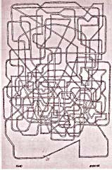 Vicente Rojo, en papel: el gusto por los formatos pequeños, como si en ellos se produjera de una manera idónea, ``monádica'', la determinación de la forma. En el breve espacio del papel ocurre el laberinto, la forma que se duplica y triplica y multiplica hasta llenar por completo el papel. Así en México bajo la lluvia o Paseo de San Juan, que complementan las bellas y largas series pictóricas homónimas en las que Rojo ha venido trabajando en los últimos años. Valdrá la pena detenerse, sin embargo, en el doble Homenaje a Klee de 1964, en el que parece cifrarse un estudio de los ritmos gráficos que han dado a Rojo una de las pautas más claras de su trabajo pictórico ulterior. Las tensiones repetitivas, como en la música que se ha dado en llamar con ese nombre -la de Steve Reich, la de Phillip Glass-, ordenan los ritmos plásticos como en un vasto mar ondulante, sin fin. Hay algo, también, de solemnidad en esos dibujos, como de capa de un oficiante, o acaso de hagaromos, el manto de plumas del ángel en el teatro Noh japonés, visible igualmente en los dos Estudios para pintura del mismo 1964. La extrema densidad de algunos de los Estudios para laberinto, también de ese año, más que en un análisis del ritmo parece inspirada por un interés en el tejido que los trazos conforman, en un juego casi interminable de variaciones y modulaciones -una preocupación que define con claridad el dibujo Universo 4 (1963).