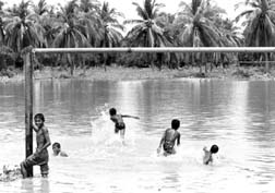 Cancha inundada en Terero, municipio de Cuajinicuilapa.