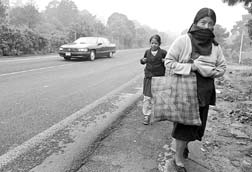 Cruzando la creciente en Panitlahuac, Oaxaca.