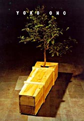 Ex It es una instalación de cien ataúdes en los que crecen naranjos. La metáfora de la vida que surge de la muerte es bastante obvia. Hay 60 féretros para hombres, 30 para mujeres, 10 para niños. ``Pensé vagamente en lo que ocurre en un campo de batalla; son las estadísticas habituales de la guerra'', las respuestas de Yoko son concisas, como si buscara restarse importancia; pide que la interroguen a fondo pero toda respuesta es una afable miniatura. Muchas de sus obras parten de juegos de palabras (baste recordar la tarjeta postal blanca con un hoyo en el centro y la leyenda ``un agujero para ver el cielo'') y la crítica no ha dejado de atribuirle influencias de la poesía japonesa y de la filosofía Zen. Yoko acepta a medias estas conjeturas: ``Creo que gran parte de mi trabajo tiene que ver con el Zen, pero no estoy muy consciente de ello. En ocasiones me sorprendo de encontrar ecos del arte japonés. Se trata de un efecto posterior, no buscado. De pronto alguien me dice: `esto es como un haikú' y yo pienso: `entonces es cierto'.''