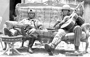 Soldados del presidente Denis Sassou-Nguesso en una calle de