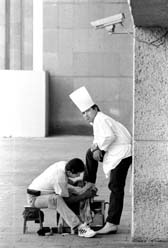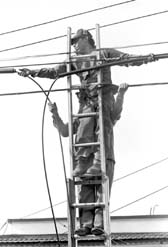 Trabajadores de Teléfonos en la colonia Mixcoac.