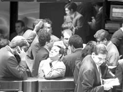 En el salón de remates de la Bolsa Mexicana de Valores.