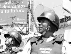 Granaderos esperan la orden para desalojar a trabajadores