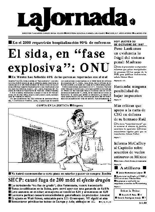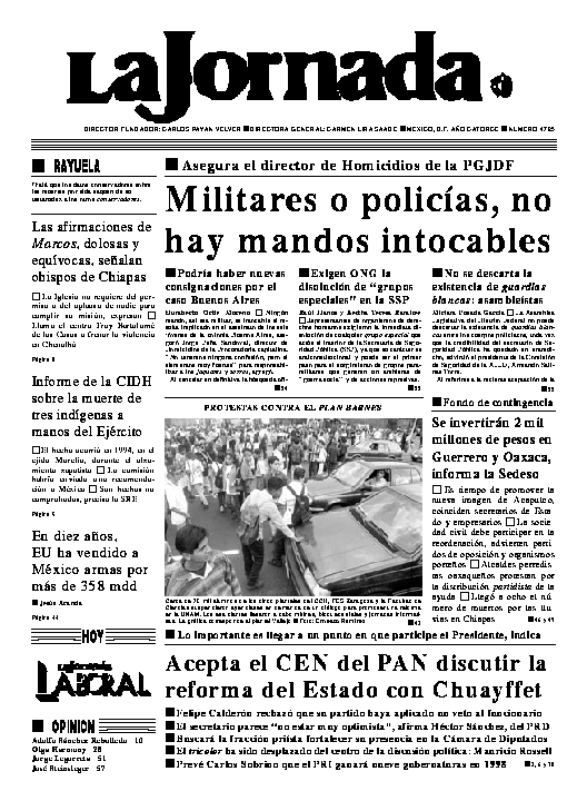 Se informa a los lectores de la Jornada en internet que el sitio