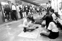 Deberes escolares en la estación Centro Médico.