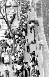 Fila de pignorantes en el Monte de Piedad.