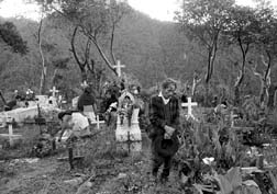 a sus muertos en el panteón de la comunidad.