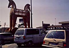 Prefiero el enorme caballo de Troya de Marcos Ramírez Erre, instalado a pocos metros de las casetas de la frontera, con dos cabezas: una hacia Estados Unidos, otra hacia México. Evita así el estereotipo de la penetración unidireccional del norte al sur, y también las ilusiones opuestas de quienes afirman que las migraciones del sur están contrabandeando lo que en EE.UU. no aceptan, sin que se den cuenta. Es un ``antimonumento'' frágil, efímero y ``translúcido, porque ya nosotros sabemos todas las intenciones de ellos hacia nosotros, y ellos las de nosotros hacia ellos''. En medio de los vendedores mexicanos circulando entre autos aglomerados frente a las casetas, que antes ofrecían calendarios aztecas o artesanías y ahora ``al hombre araña y los monitos de Walt Disney'', Ramírez Erre no presenta una obra de afirmación nacionalista sino un símbolo universal modificado para indicar la incertidumbre de un tiempo en ``que la única manera de cubrir la verdad es sobreinformando''. No es la censura lo que ahora se usa ``para ocultar la verdad, como en los asesinatos que hubo por acá''; ``cuando ya no hay suficientes guardias de la censura para controlar la avalancha de sospechas y ya no sabe uno dónde quedó enterrada la verdad, cada quien tiene su versión, y ahí comienza el trabajo creador''. Una respuesta lúcida a quienes todavía creen posible establecer aduanas rígidas, proteger las ciudades y sus imágenes con decretos.