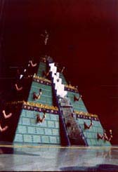 En cambio, suscita dudas la forma de asumir la frontera sugerida por la obra de Jamex y Einar de la Torre. Bien resuelta en su intento de integrar la pirámide precolombina con materiales e iconografía chicana (superficies lustrosas, objetos de religiosidad y diversión popular), propone un espacio atrincherado, defendido por múltiples brazos empuñando botellas rotas: la lucha contra lo otro, al fin de cuentas incorporado a la iconografía de la pirámide, ¿puede ser repliegue sobre lo que proclamamos ``propio'' y acabar en una pelea de borrachos?