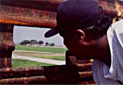 Más esquiva es la confrontación entre quienes buscan pasar sin documentos y quienes tratan de detenerlos. La ``línea'' de alambre mil veces burlada ha dejado su lugar a un símbolo rotundo: las planchas de acero que se usaron para pistas de aterrizaje en el desierto durante la Guerra del Golfo, reconvertidas ahora en kilómetros y kilómetros de un muro apenas un metro más bajo del que hubo en Berlín. Respaldado en los tramos más vulnerables por una segunda barrera de columnas de cemento, por coches de la Border Patrol y helicópteros, desaniman la creatividad, como se ve por los graffitti -más escasos que en aquel monumento europeo. Puede encontrarse a veces a cinco niños cavando un túnel de juguete y pasando a jugar por breve tiempo del otro lado, pero predominan los grupos de hombres y mujeres que huyen; algunas, con hijos muy pequeños, se esconden de la migra y también de policías mexicanos en bicicletas, que dicen perseguirlas ``porque son las que vienen a robar a los que quieren pasar al otro lado''.