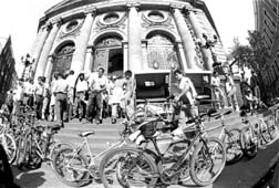 En dos ruedas, frente al inmueble de la Asamblea Legislativa,